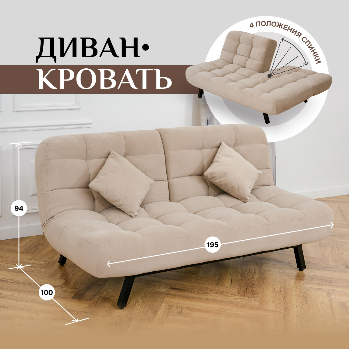 Ниже Вы можете прочитать отзывы на Диван-кровать Brendoss 304, прямой диван раскладной с двойной спинкой, клик-кляк, антивандальный велюр, цвет бежевый, ознакомится с подробными характеристиками, посмотреть интересные обзоры и фотографии на Диван-кровать Brendoss 304, прямой диван раскладной с двойной спинкой, клик-кляк, антивандальный велюр, цвет бежевый.