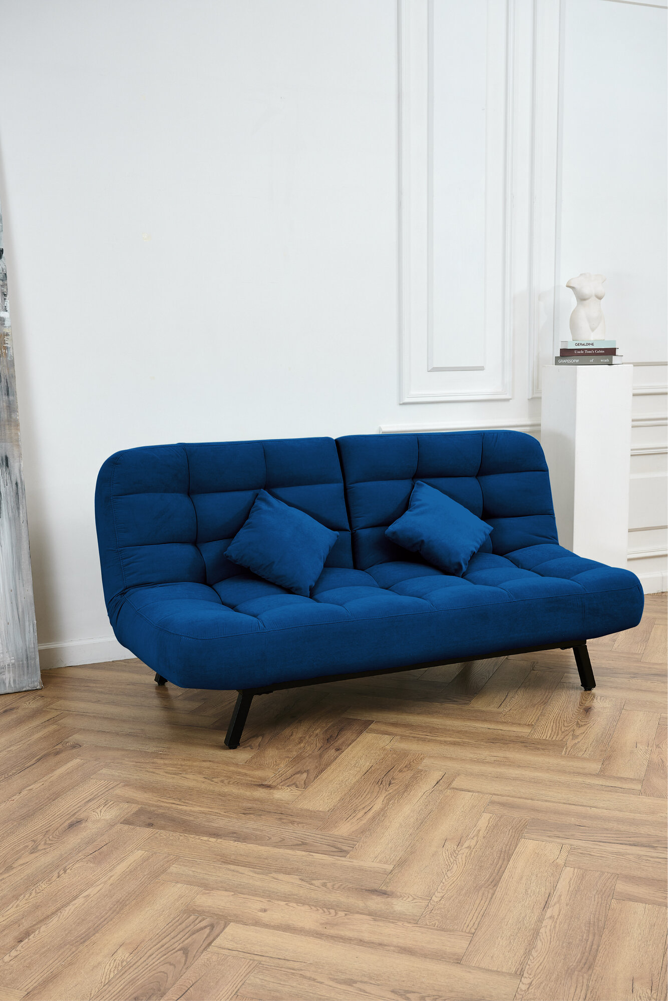 Диван-кровать Brendoss 304, прямой диван раскладной с двойной спинкой лофт, механизм клик-кляк, материал антивандальный велюр, цвет синий