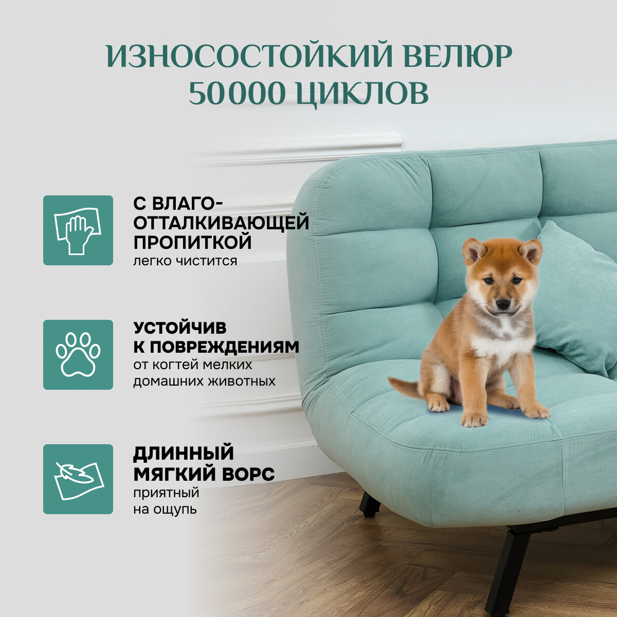 СохранитьДиван-кровать Brendoss 304, прямой диван раскладной с двойной спинкой, клик-кляк, антивандальный велюр, цвет мятный интересное:
