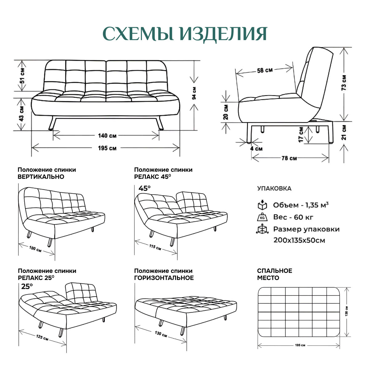 | Дополнительная информация | двойная спинка с 3 положениями: вертикальное, релакс, горизонтальное; материал: антивандальный велюр |