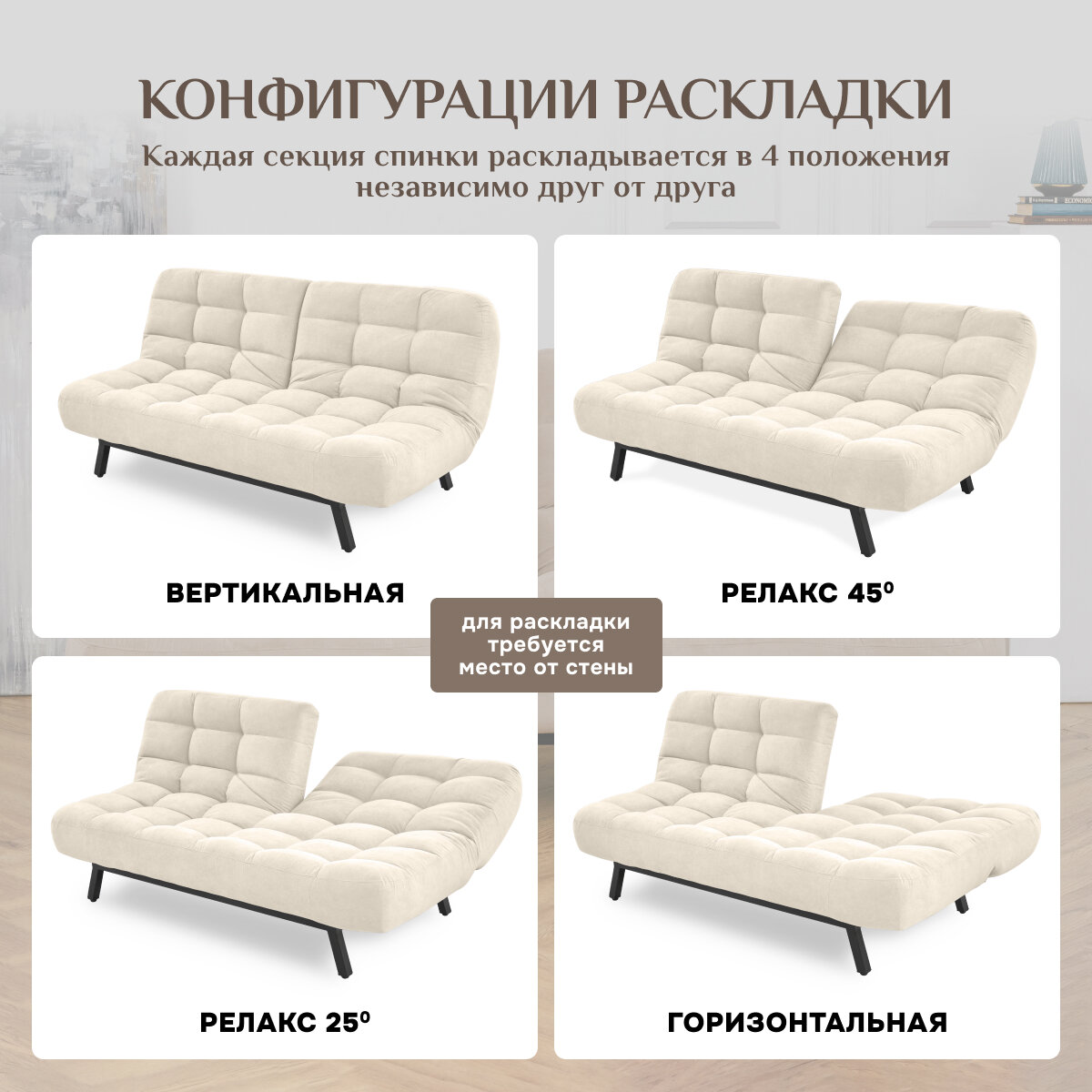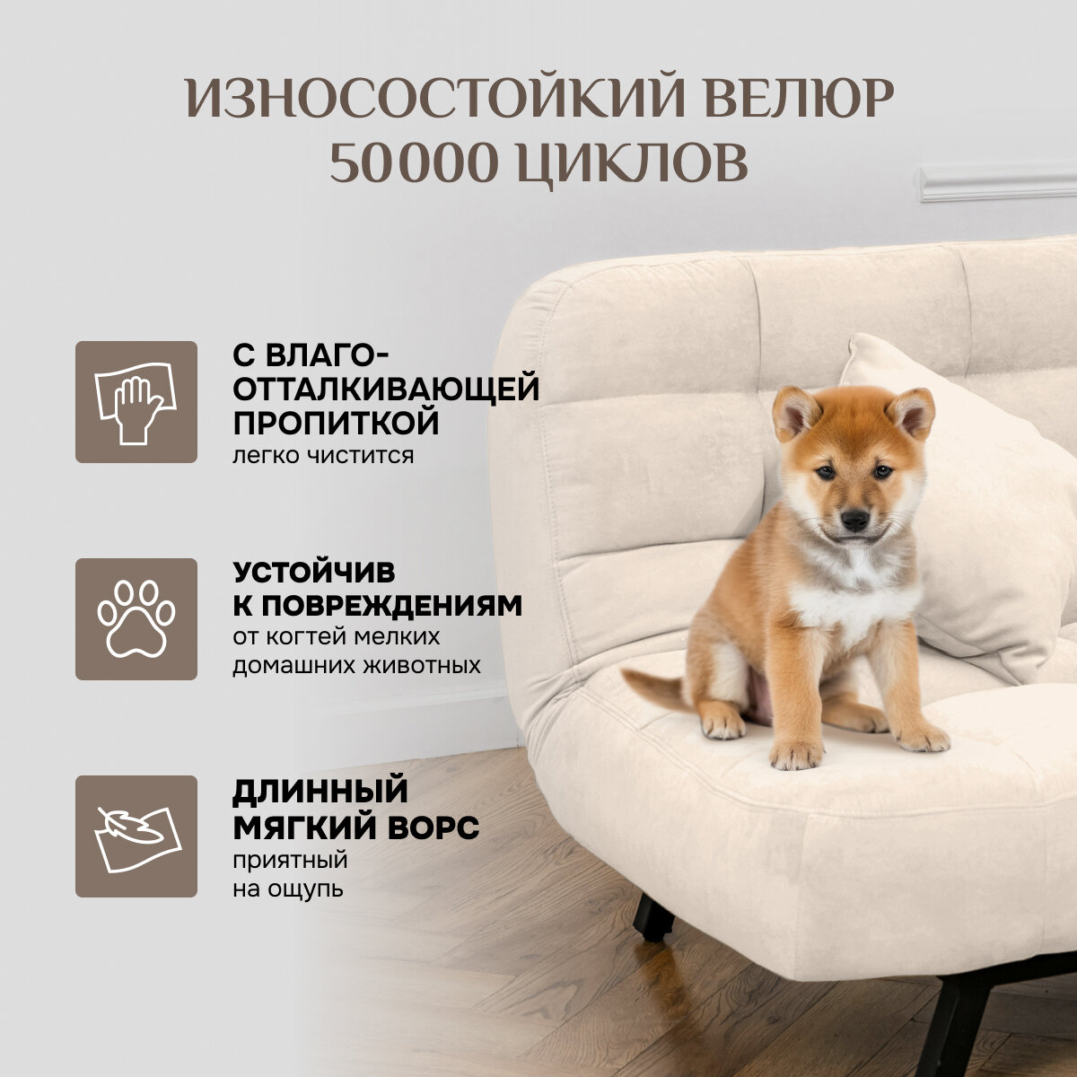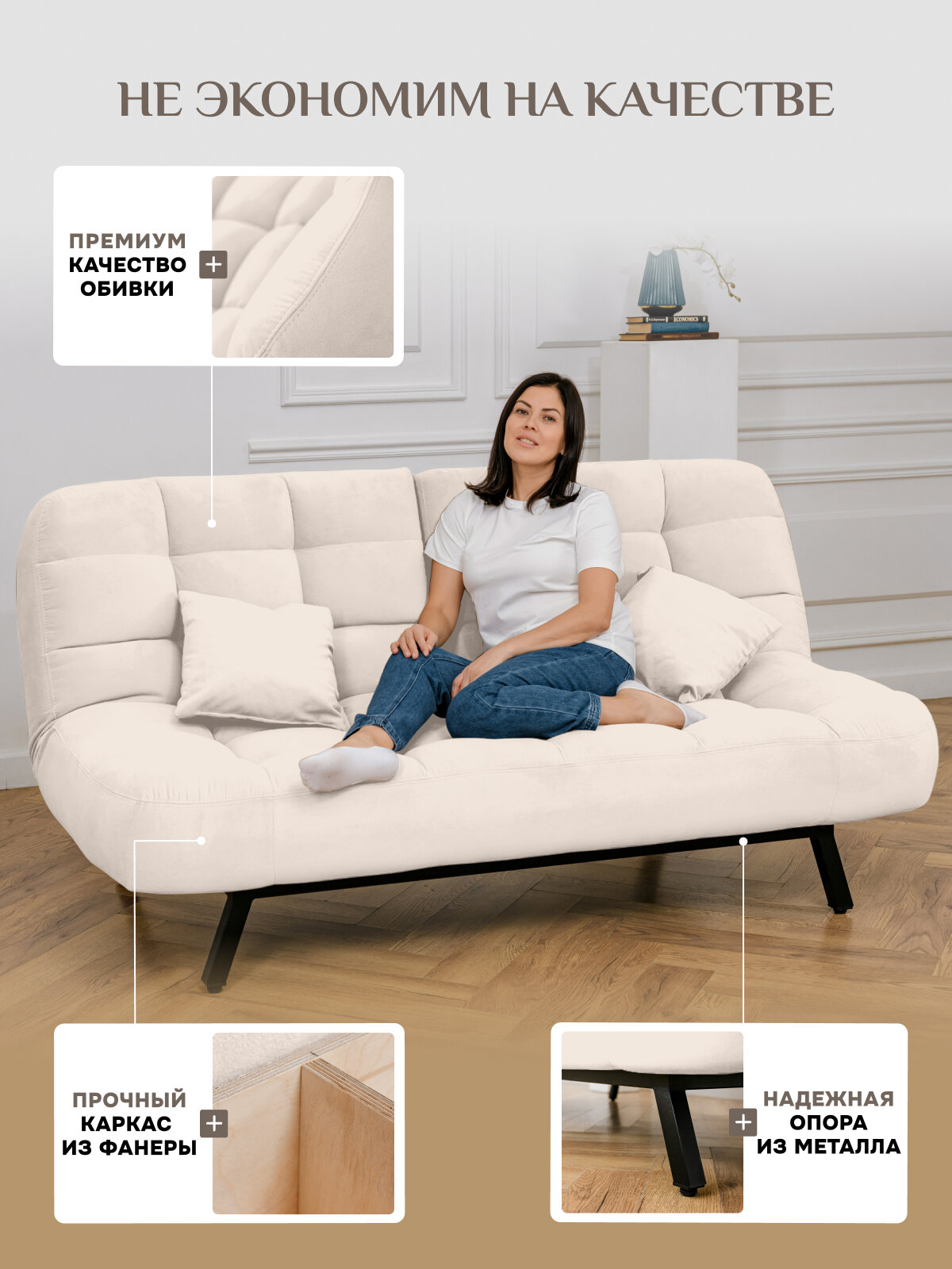 СохранитьДиван-кровать Brendoss 304, прямой диван раскладной с двойной спинкой, клик-кляк, антивандальный велюр, цвет молочный интересное: