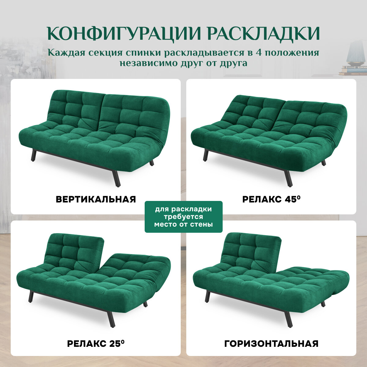 Диван-кровать Brendoss 304, прямой диван раскладной с двойной спинкой лофт, механизм клик-кляк, материал антивандальный велюр, цвет изумрудный