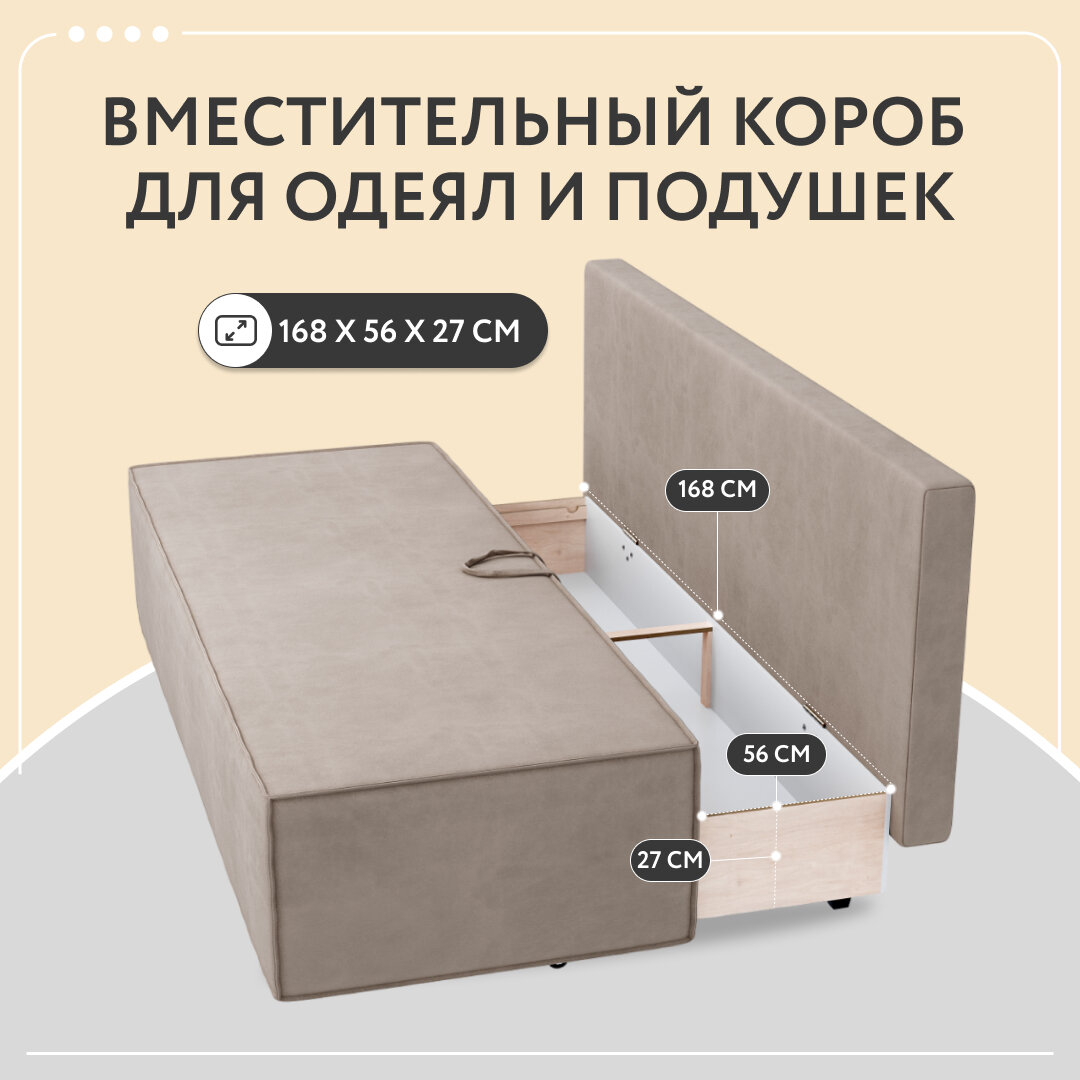 | Особенности | без подлокотников, пружинный блок, раскладная конструкция, ящик для белья |