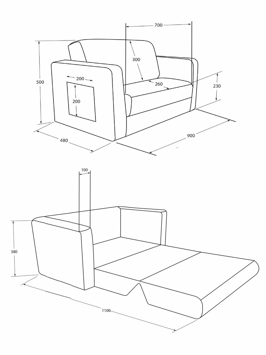 | Особенности | антивандальная обивка, бескаркасный, раскладная конструкция, с подлокотниками, съемный чехол |