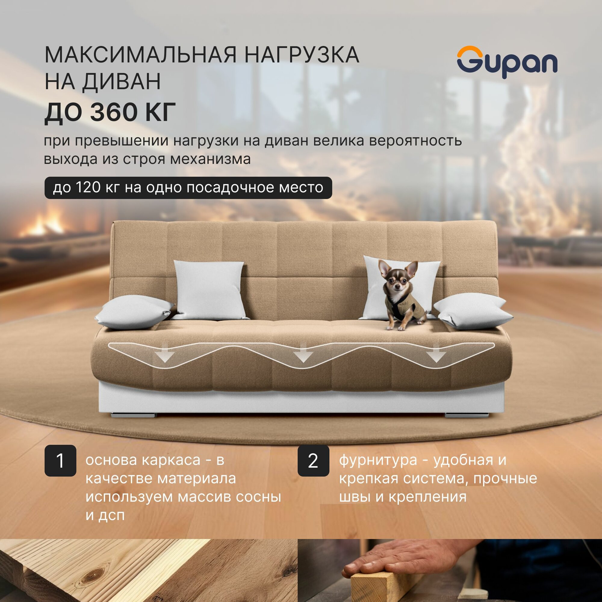 Диван кровать Gupan Арбат Велюр Amigo Latte, диван раскладной, механизм Книжка, беспружинный, диван прямой, с ящиком для белья, в гостиную, лофт