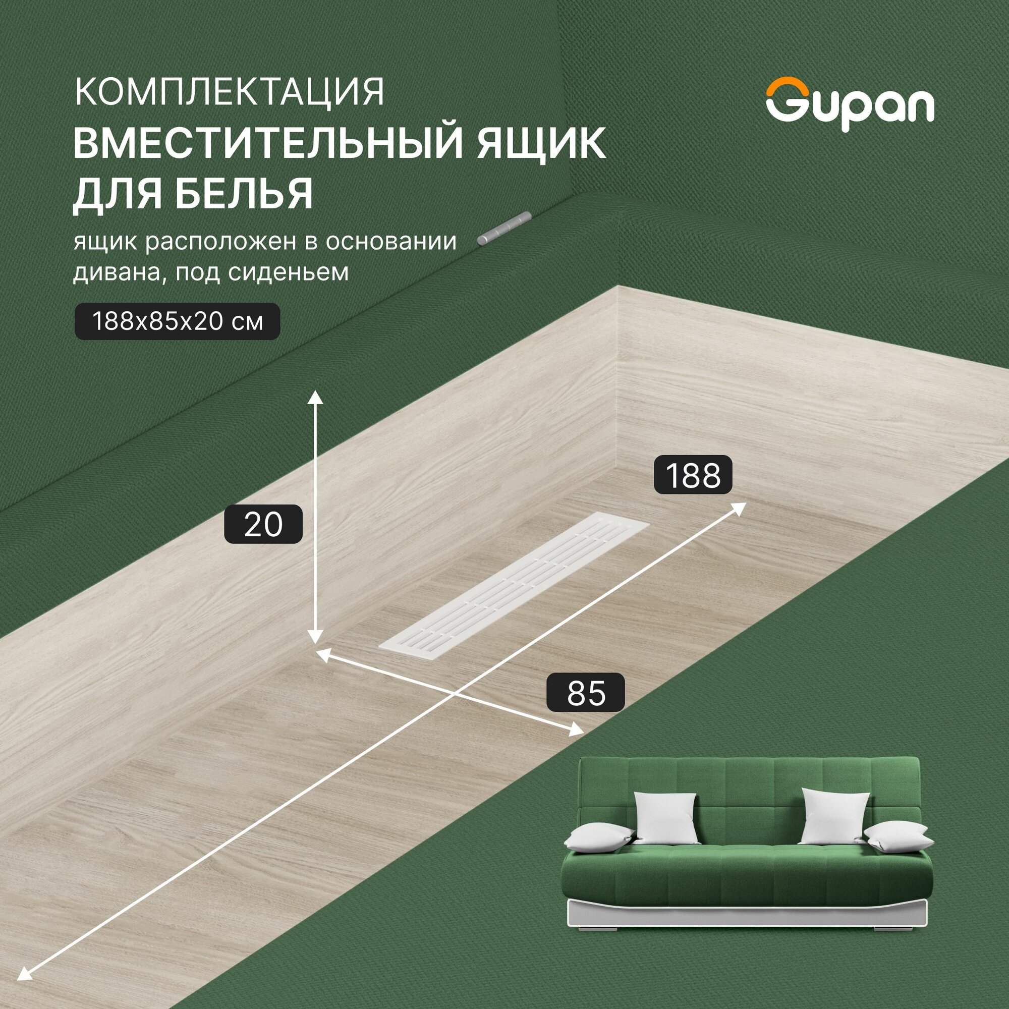 Купить Диван кровать Gupan Арбат Велюр Amigo Green, раскладной, механизм книжка, беспружинный, с ящиком для белья