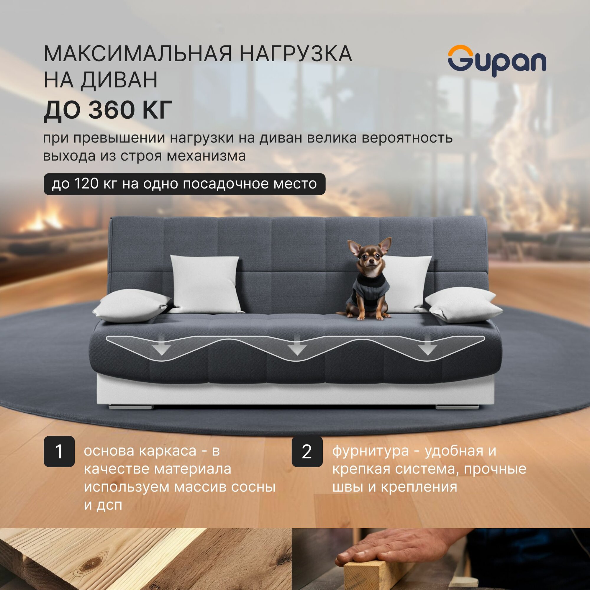 Диван кровать Gupan Арбат Велюр Amigo Grey, раскладной, механизм книжка, беспружинный, с ящиком для белья
