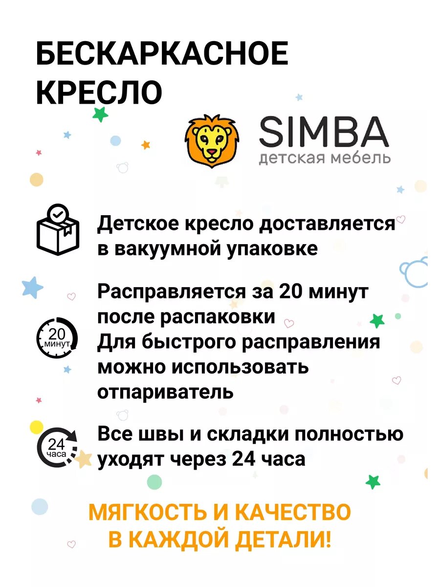 Детское мягкое кресло для малышей раскладное бескаркасное SIMBA интересное: