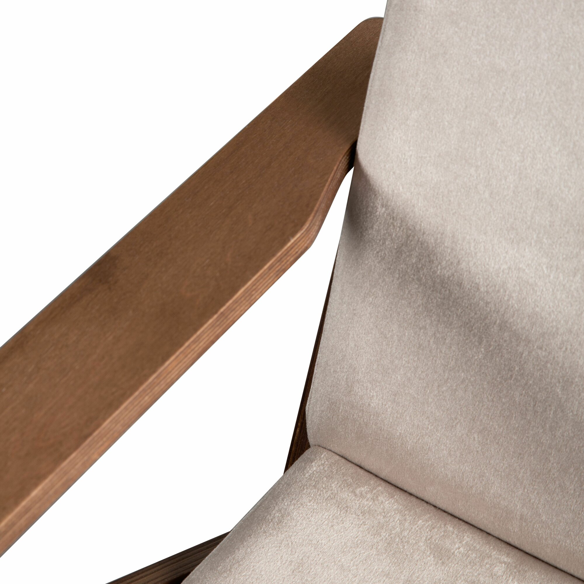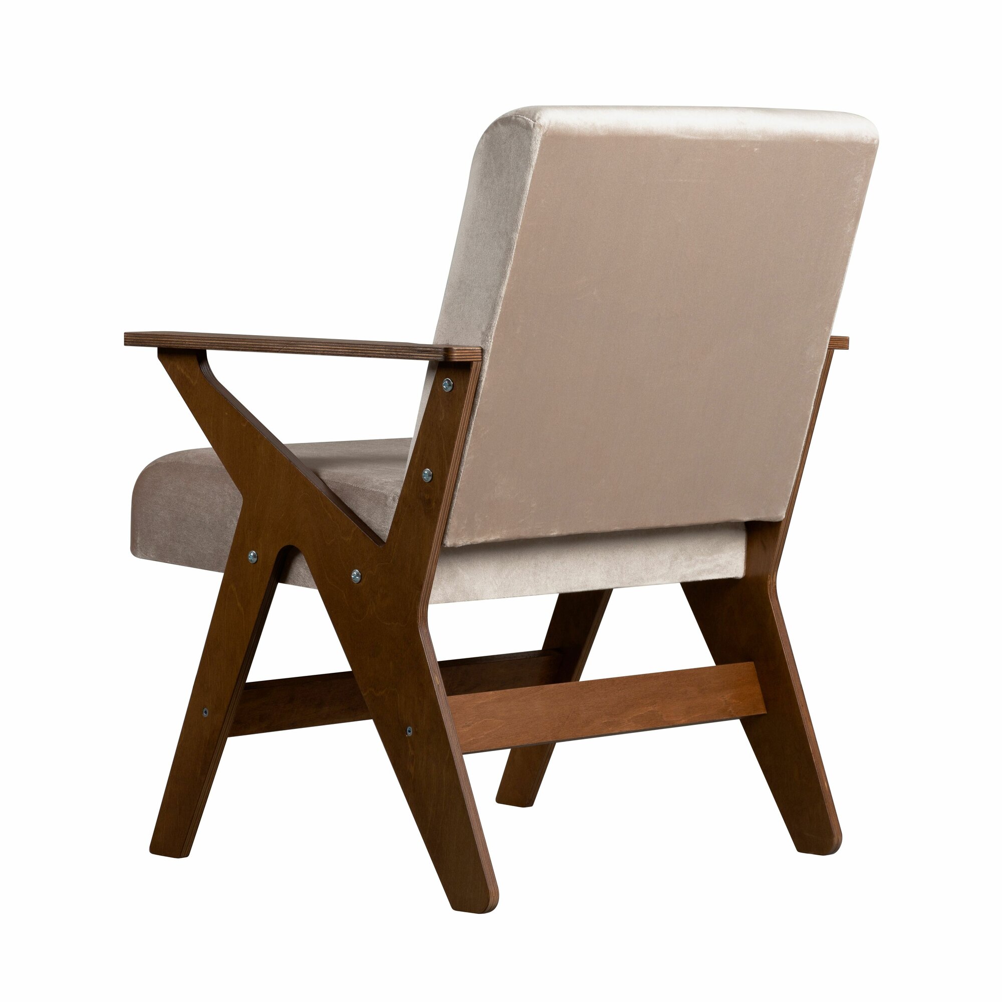 Мягкое интерьерное кресло Далас на деревянных ножках для отдыха дома с подлокотниками, бежевый бархат, Ами Мебель Беларусь