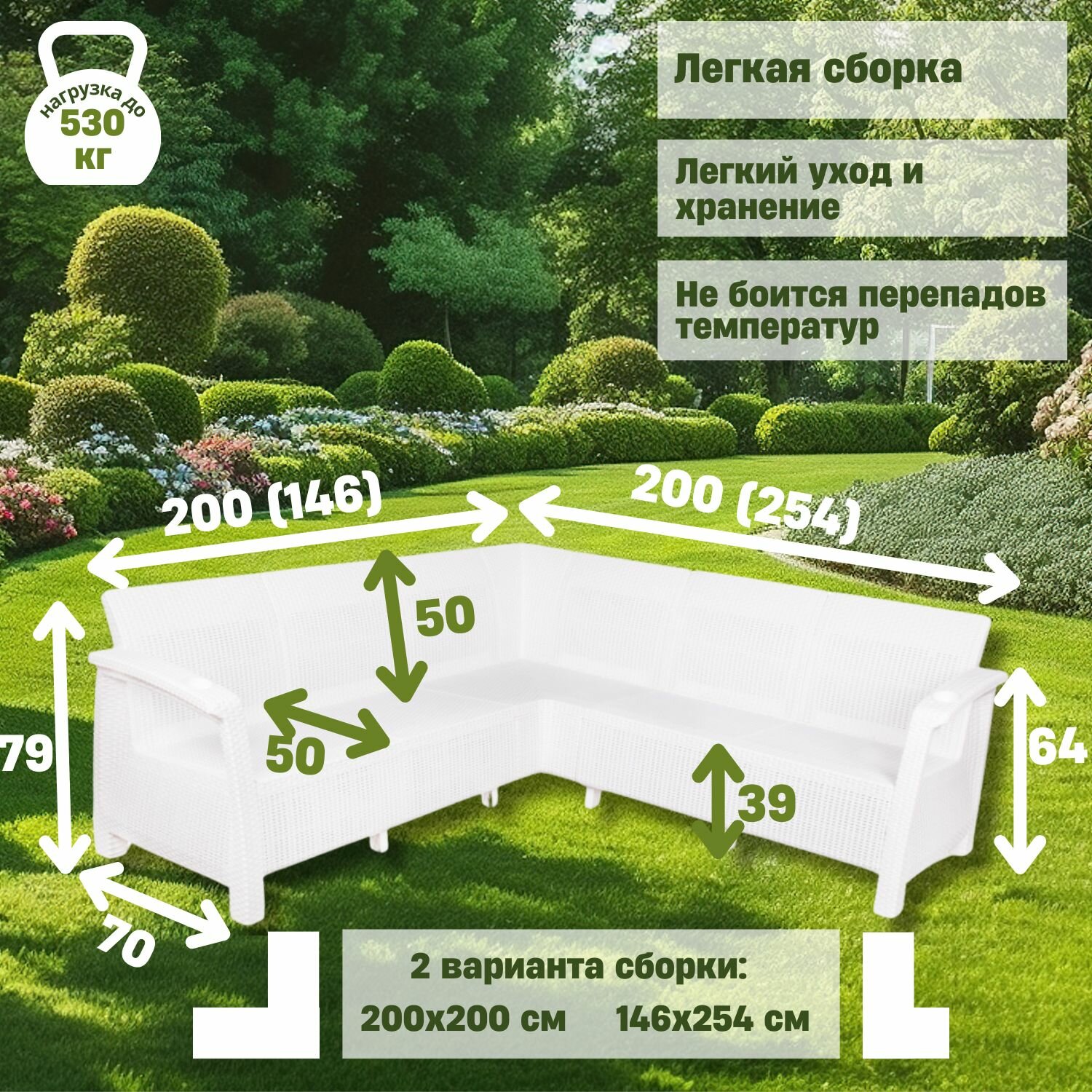 Диван садовый угловой из ротанга белый (с бежевыми подушками) 200x200x79 см интересное: