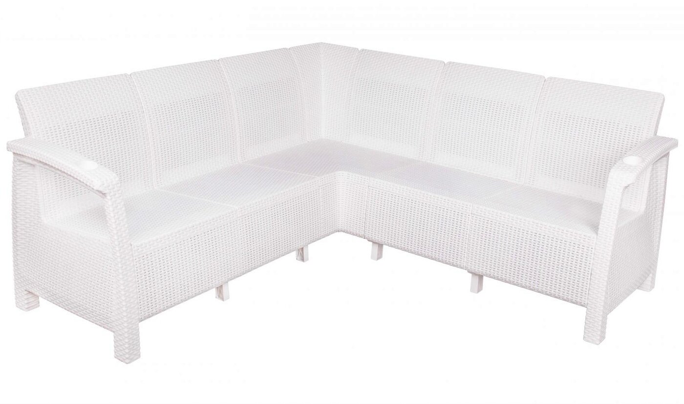 Купить Диван садовый угловой из ротанга белый (с бежевыми подушками) 200x200x79 см
