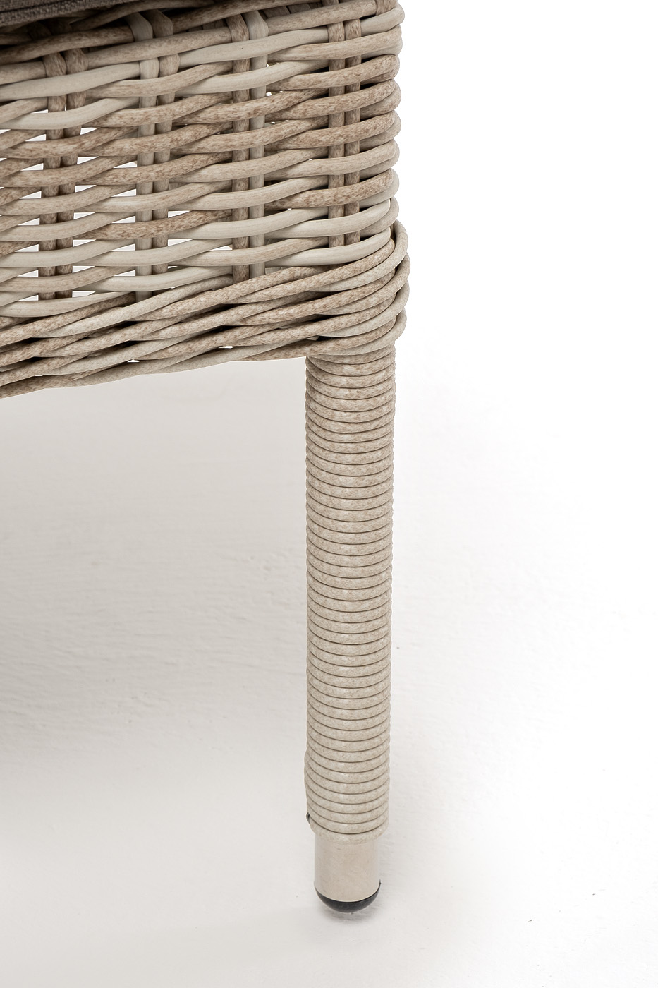 Кресло 4sis Милан из роупа (каркас алюминий белый муар, роуп бежевый круглый, ткань бежевая)