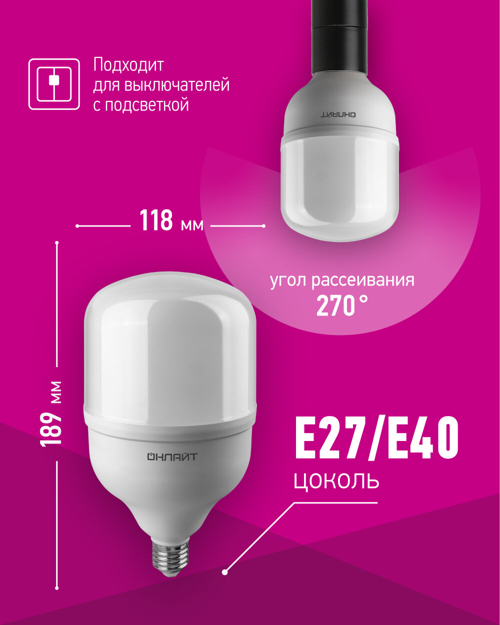 | Дополнительная информация | Переходник E27 -> Е40 в комплекте |