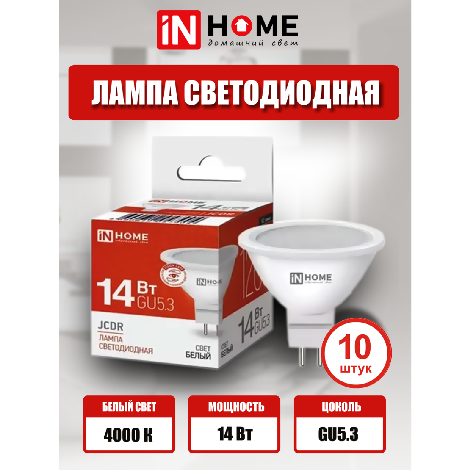 Купить Лампа светодиодная GU5.3, набор 10 шт, нейтральный белый свет 4000К, 1260 Лм / 14 Вт, 230 В, IN HOME LED-JCDR-VC