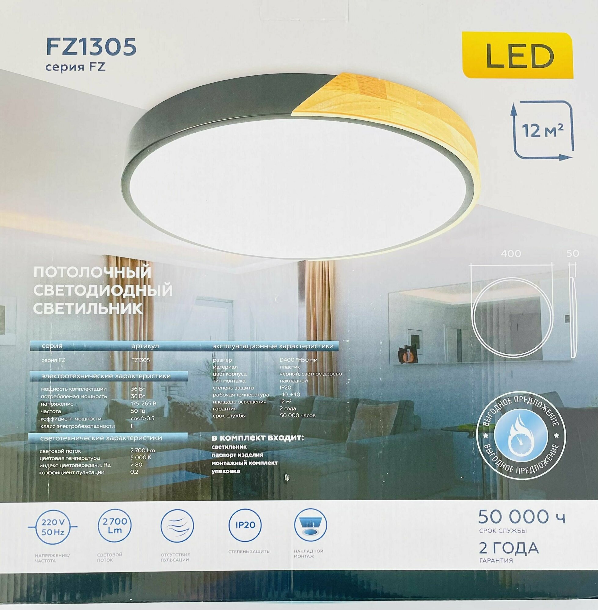 Потолочный светодиодный светильник FZ1312 WH/LW белый/светлое дерево 36W 5000K 400*400*50 (без ПДУ)