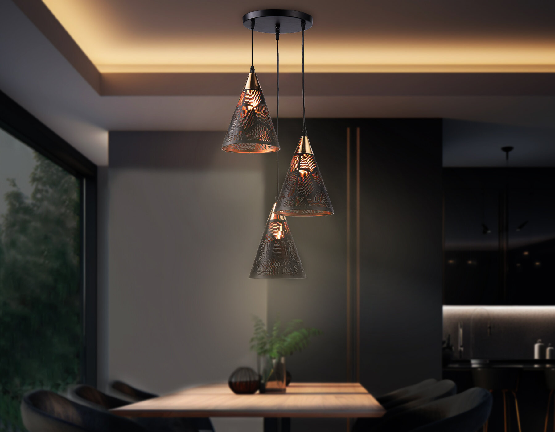 Подвесной светильник в стиле лофт Ambrella light TR8182/3 BK/LW черный/светлое дерево E27*3 max 40W 500*50*420