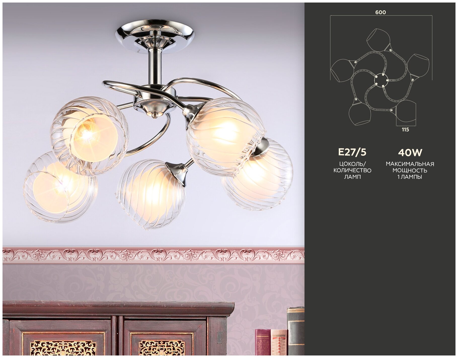 | Особенности | возможность подключения диммера / каскадная / лампы в комплекте / паук / подсветка / прозрачный плафон / регулировка по высоте / с абажуром |