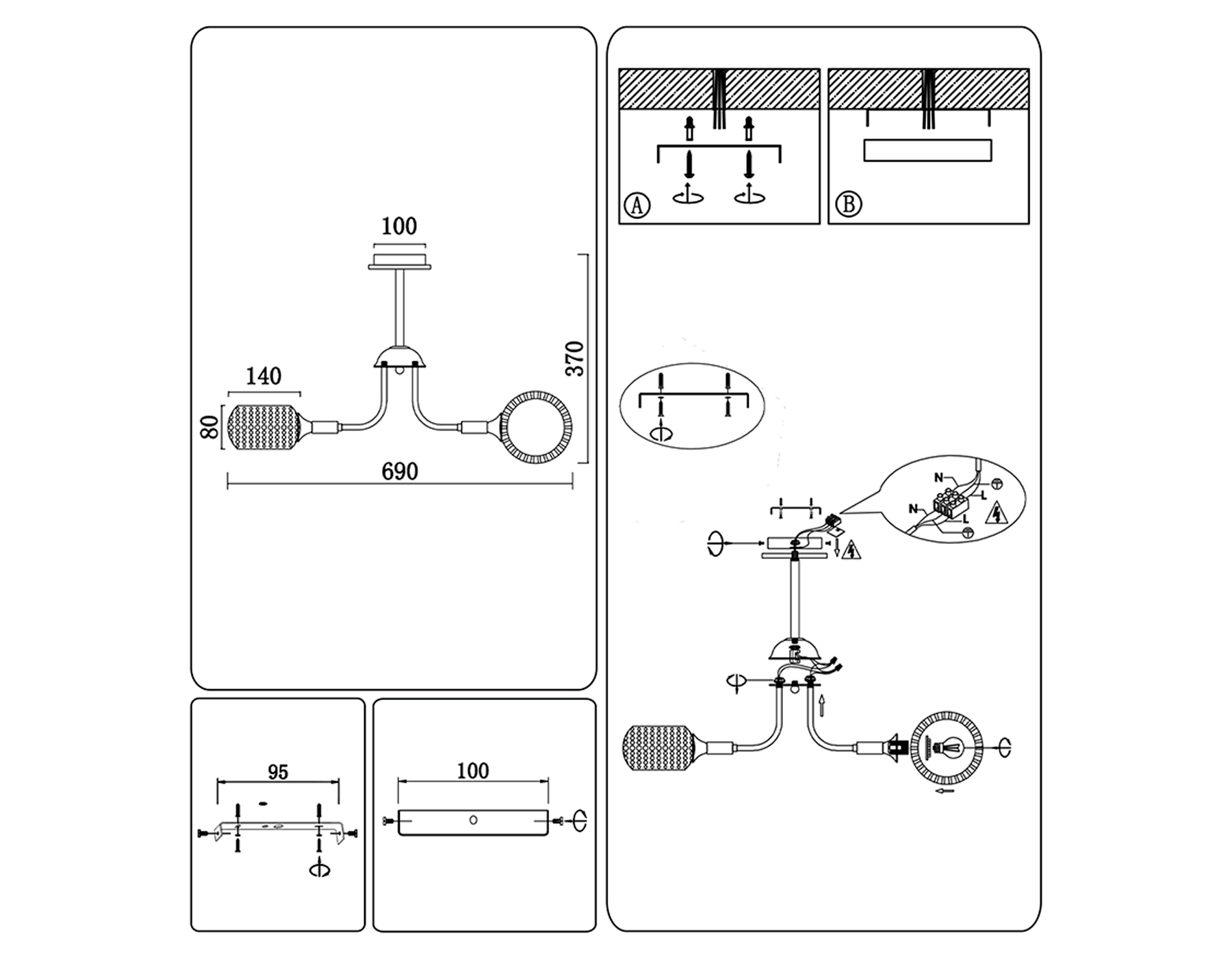 | Тип цоколя | E14 / E27 / G10 / G53 / G9 / GU10 / GU5.3 / GX53 / встроенный светодиодный светильник (LED) |
