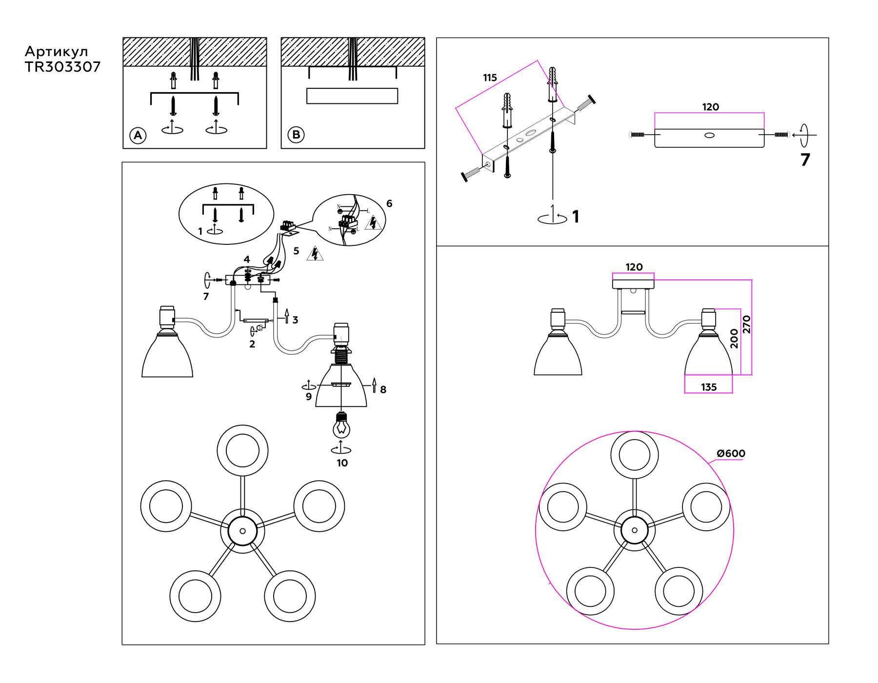 | Особенности | возможность подключения диммера / каскадная / лампы в комплекте / паук / подсветка / прозрачный плафон / регулировка по высоте / с абажуром |