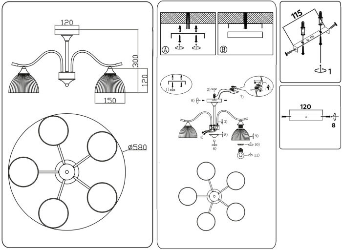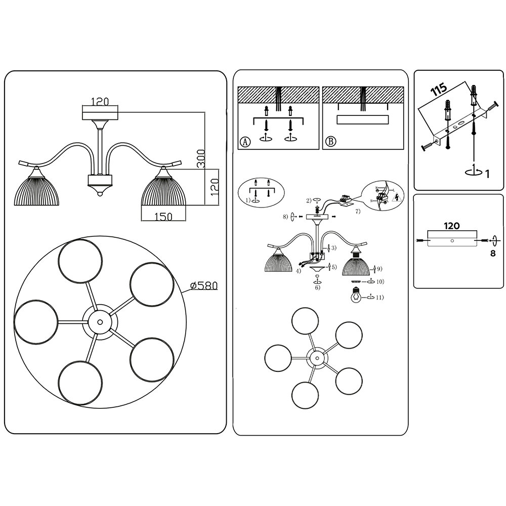 | Тип цоколя | E14 / E27 / G10 / G53 / G9 / GU10 / GU5.3 / GX53 / встроенный светодиодный светильник (LED) |