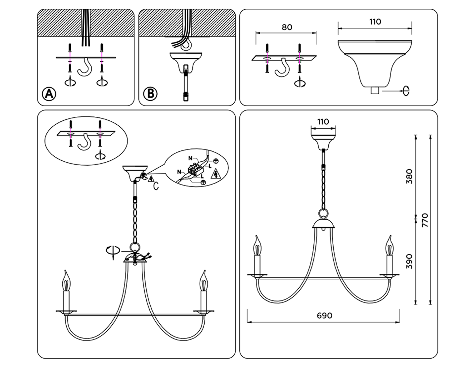 | Тип цоколя | E14 / E27 / G10 / G53 / G9 / GU10 / GU5.3 / GX53 / встроенный светодиодный светильник (LED) |