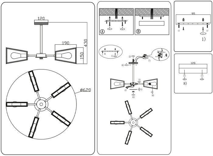 | Тип цоколя | E14 / E27 / G10 / G53 / G9 / GU10 / GU5.3 / GX53 / встроенный светодиодный светильник (LED) |