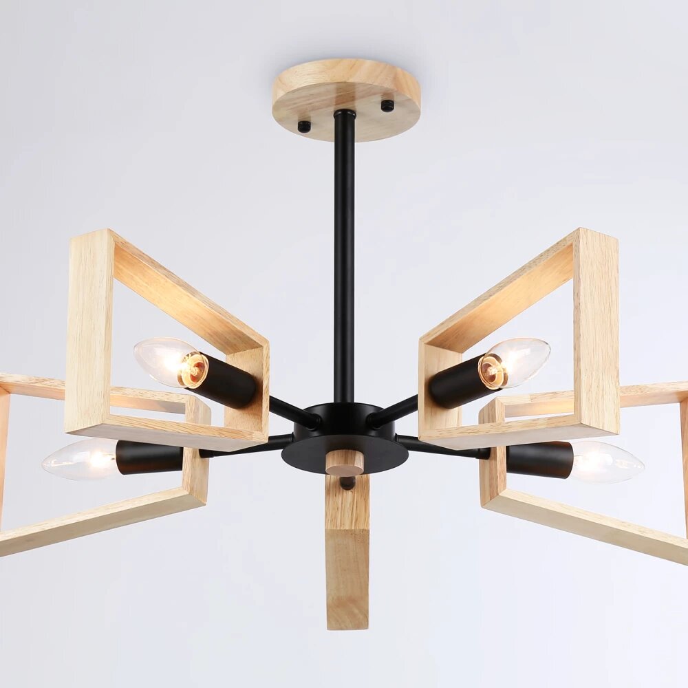 Подвесной светильник в стиле лофт Ambrella light TR8182/3 BK/LW черный/светлое дерево E27*3 max 40W 500*50*420