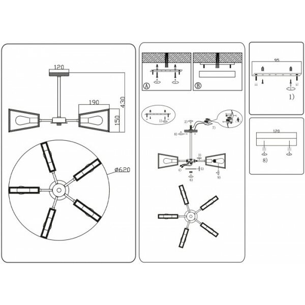 | Особенности | возможность подключения диммера / каскадная / лампы в комплекте / паук / подсветка / прозрачный плафон / регулировка по высоте / с абажуром |