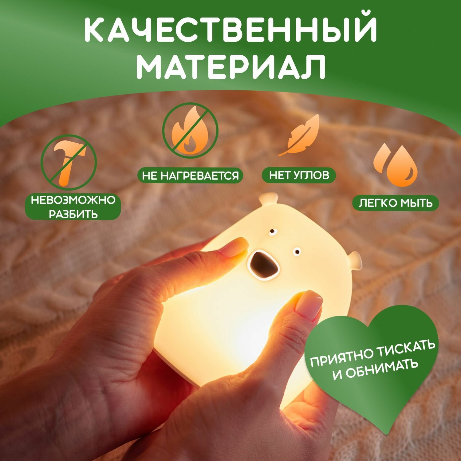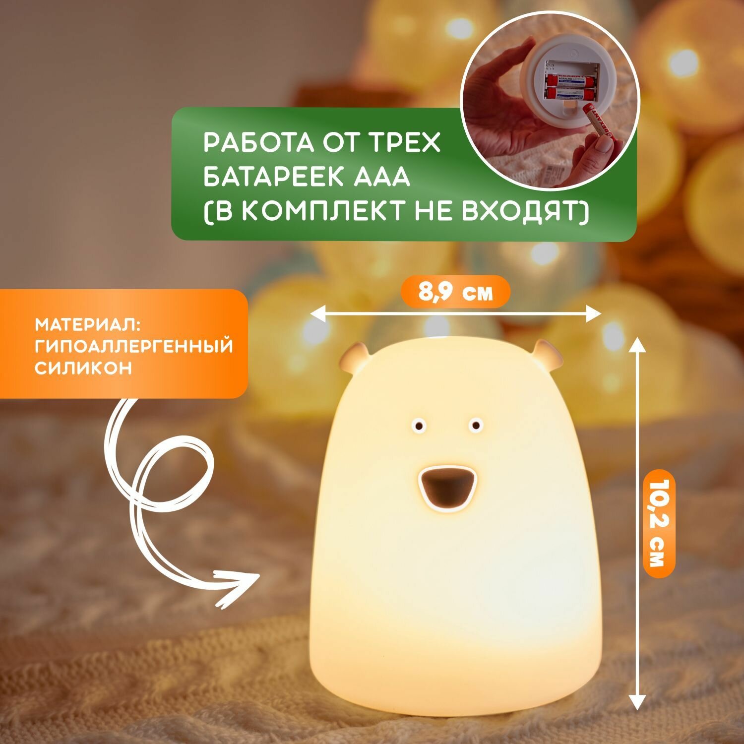Детский беспроводной силиконовый светильник-ночник Медвежонок с 3 режимами работы