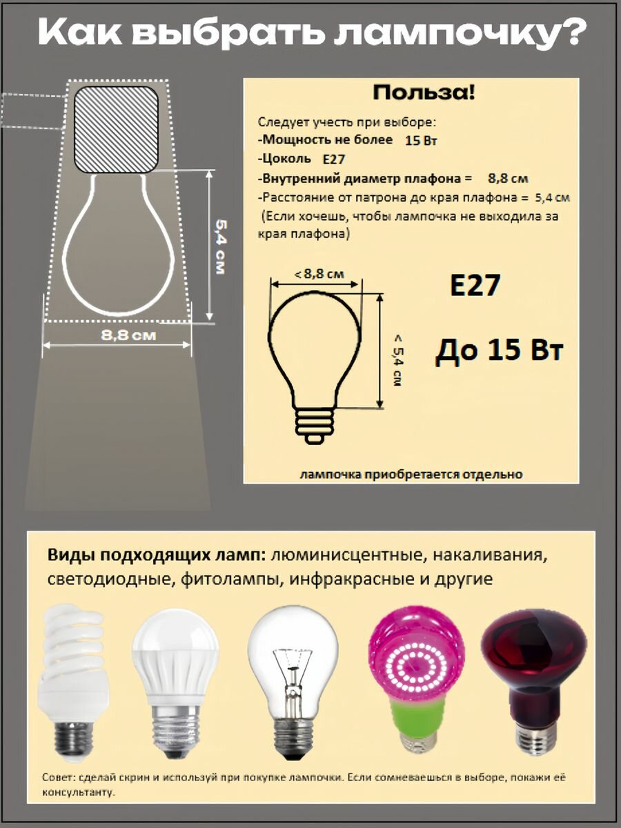| Диаметр плафона/абажура | 9 см |