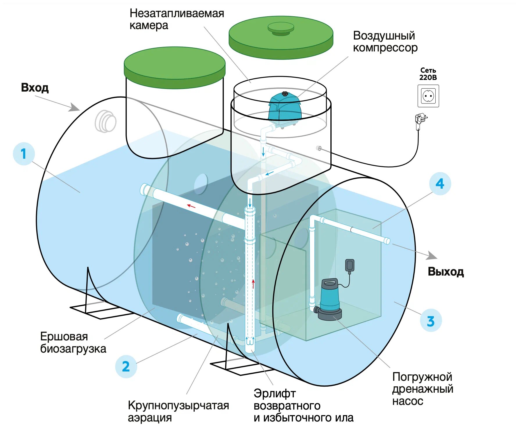 | Количество камер септика | 3 |
