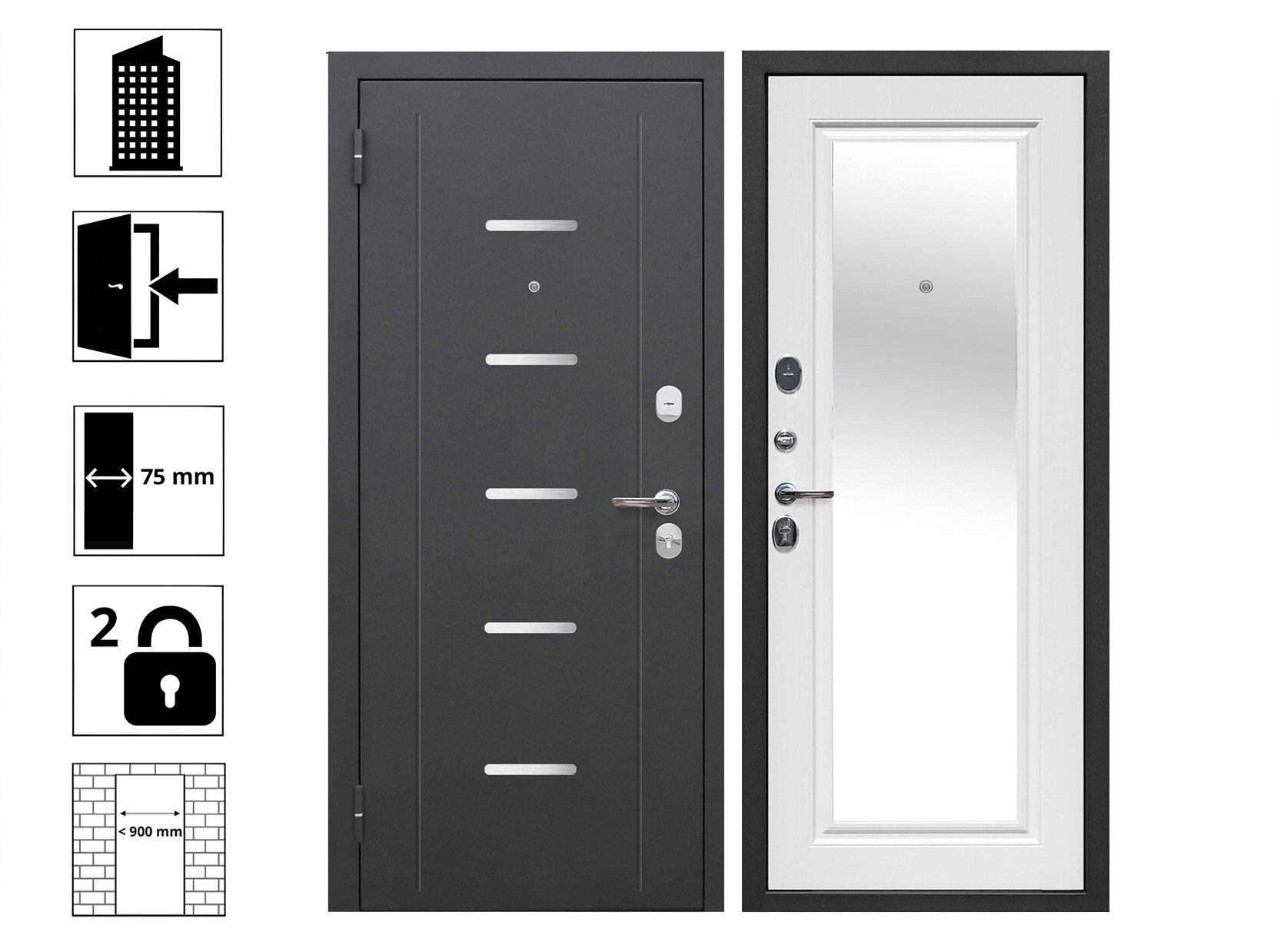 Входная дверь Labirint Лайн WHITE с зеркалом Фацет 960x2050, открывание левое