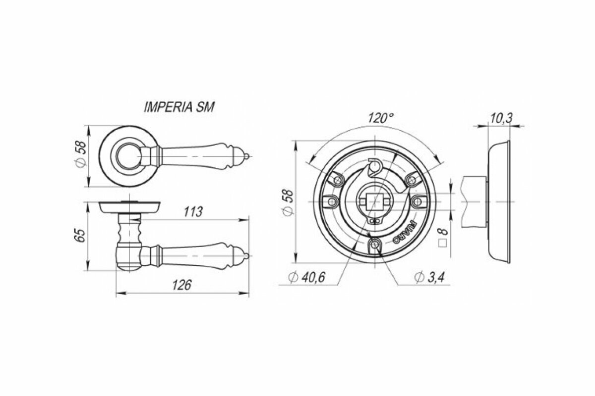 Ручка раздельная Fuaro R. SM58. IMPERIA (IMPERIA SM) MAB-6 темная бронза