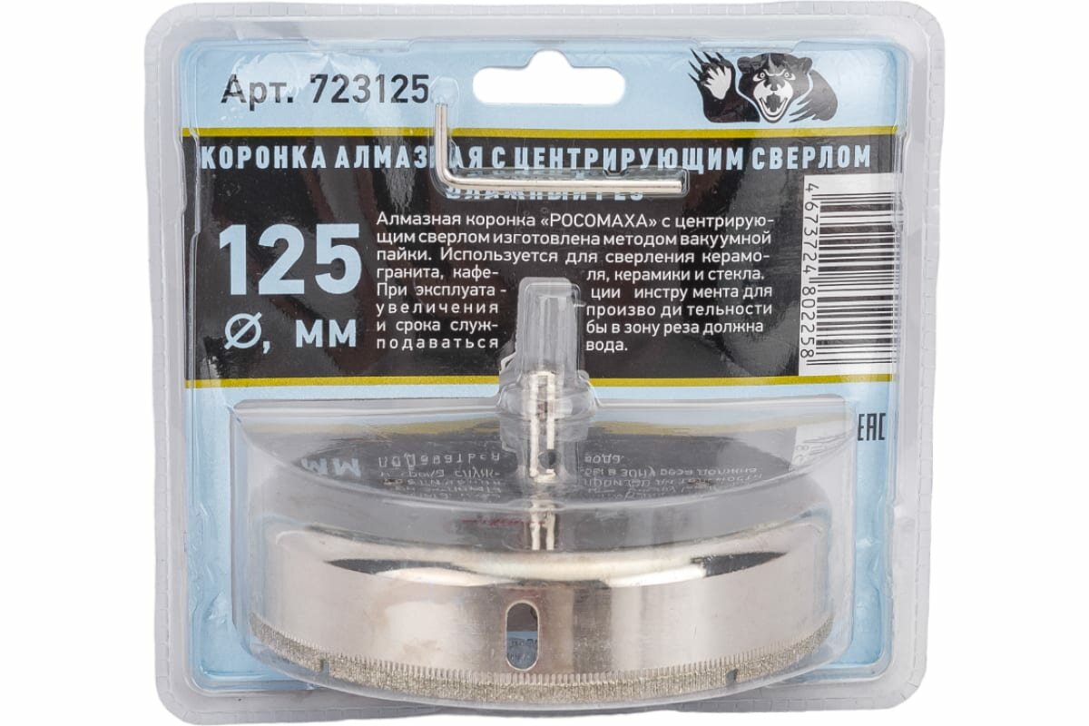 Купить Коронка алмазная с центрирующим сверлом по керамограниту и керамике 125 мм "росомаха"