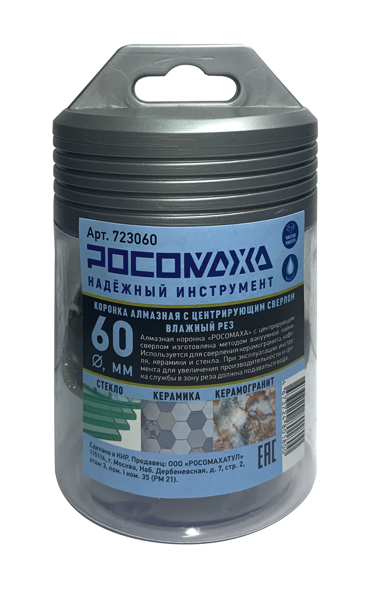 Купить Коронка алмазная с центрирующим сверлом по керамограниту и керамике 60 мм "росомаха"