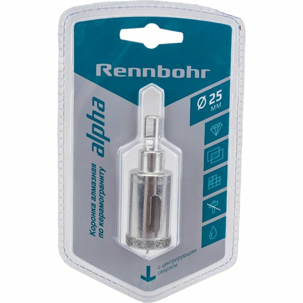 | Дополнительная информация | Коронка алмазная RENNBOHR 25мм с центрирующим сверлом |