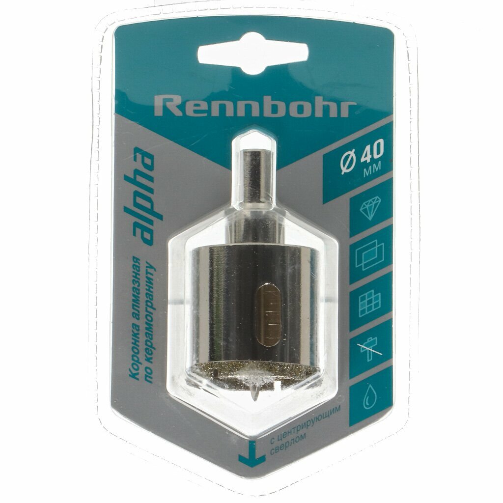Коронка алмазная с центрирующим сверлом по керамограниту и керамике 40мм "Rennbohr" (5/60) 676240