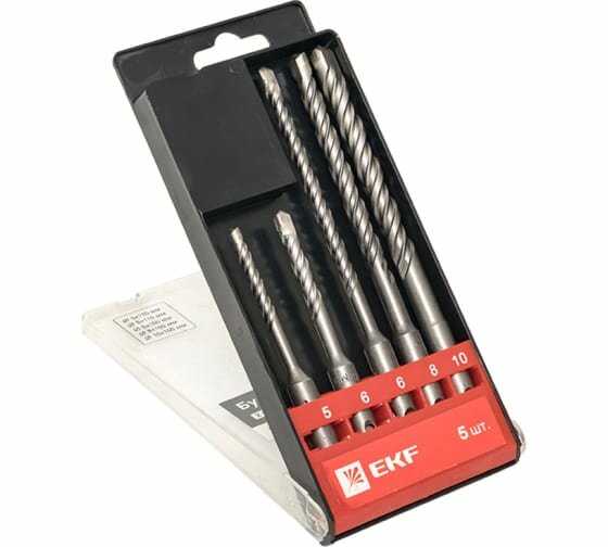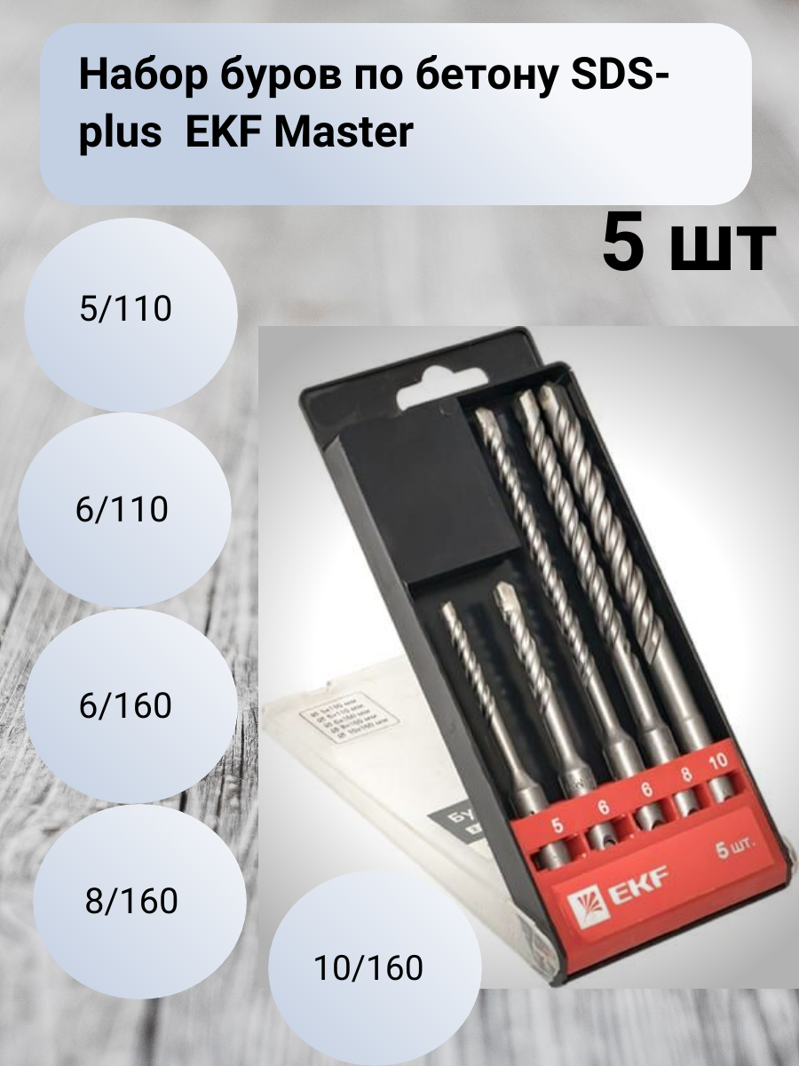Купить Набор буров по бетону SDS-plus (5/110, 6/110, 6/160, 8/160, 10/160)(2 резца) EKF Master