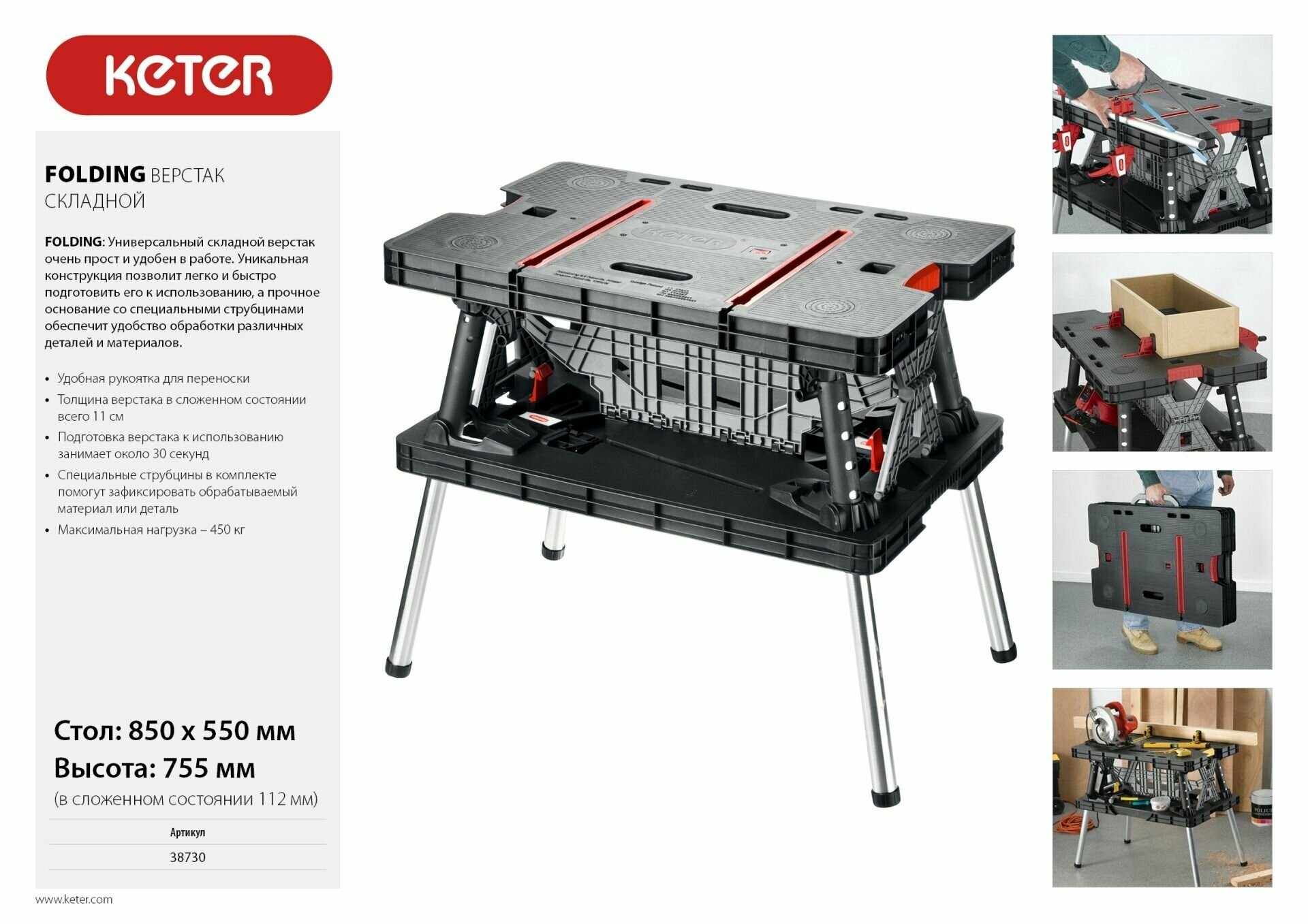 Верстак складной Keter FOLDING WORK TABLE, 850 Х 550 Х 755 мм интересное: