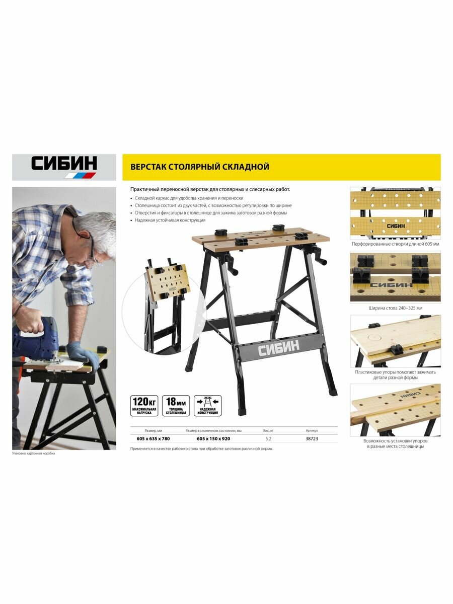 Верстак складной Сибин 38723, 605 х 120 мм интересное: