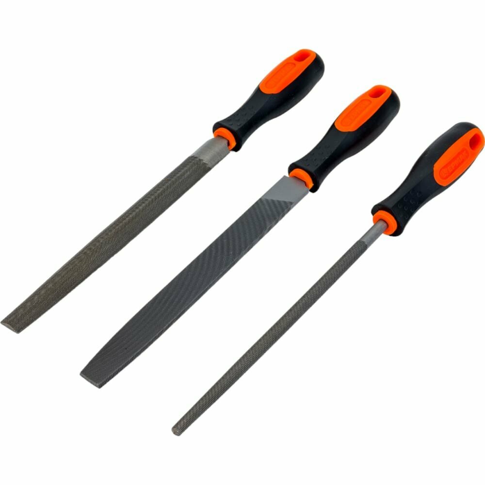 Ермак Набор напильников 200мм 3шт(круглый, полукруглый, плоский), пластиковая двухкомпонентная ручка
