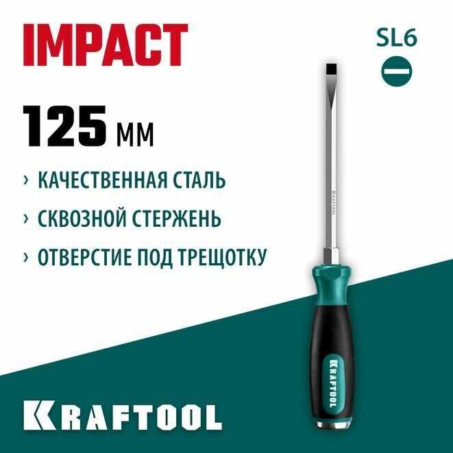 KRAFTOOL Отвертка ударная "Impact", сквозной стержень из Cr-Mo-V стали, маслобензостойкая двухкомпонентная рукоятка, SL 6x125мм, KRAFTOOL ( 250033-6 )