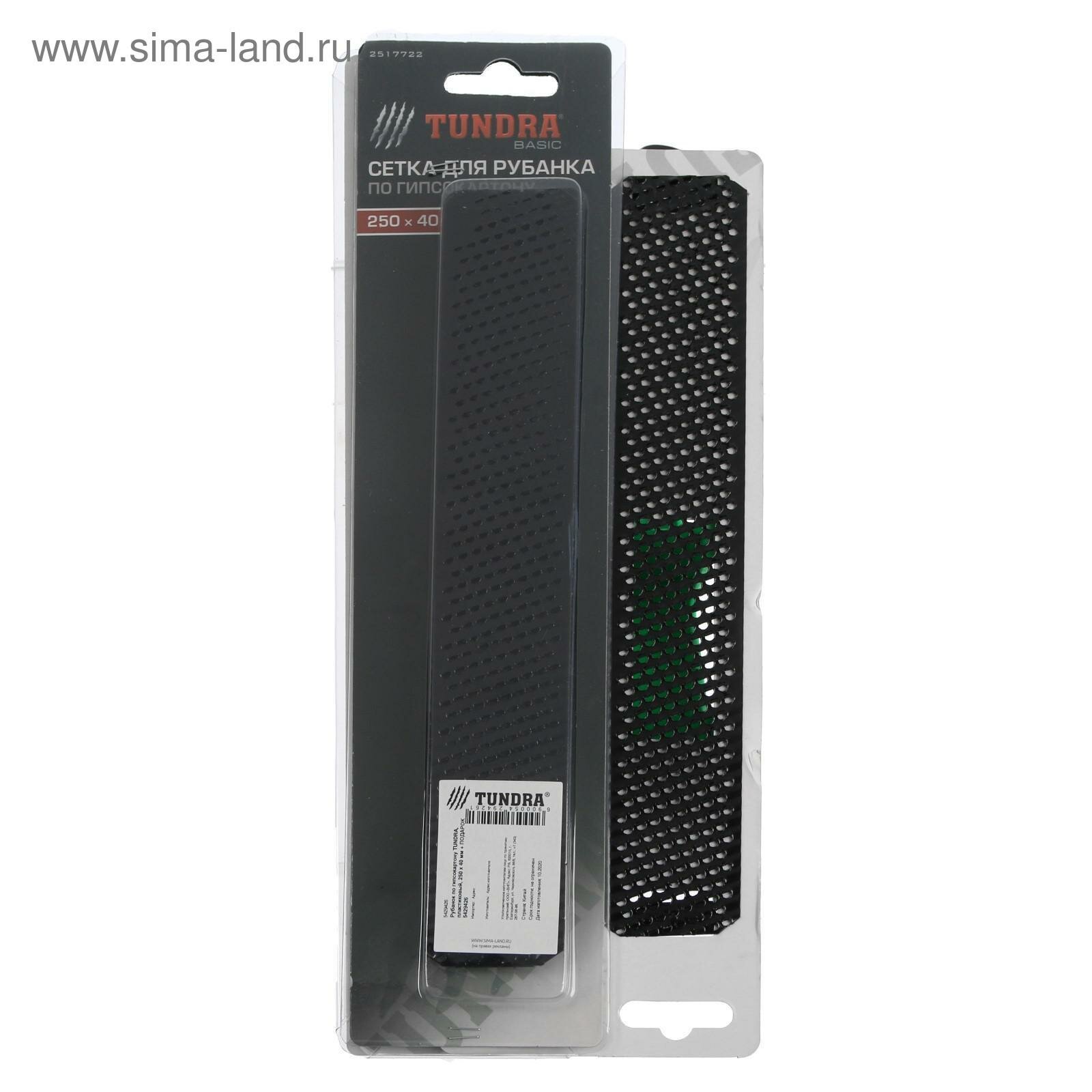 Рубанок по гипсокартону тундра, пластиковый, 250х40 мм + подарок сетки для рубанка - 2 шт. 5429426