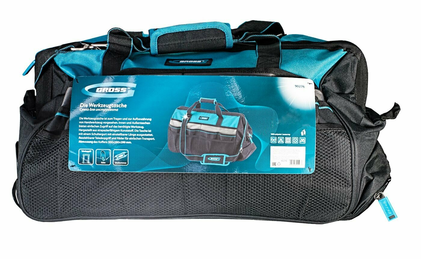 Сумка для инструмента, 500х280х290мм, выдвижная рукоятка, колеса, наплечный ремень Gross 90276 интересное: