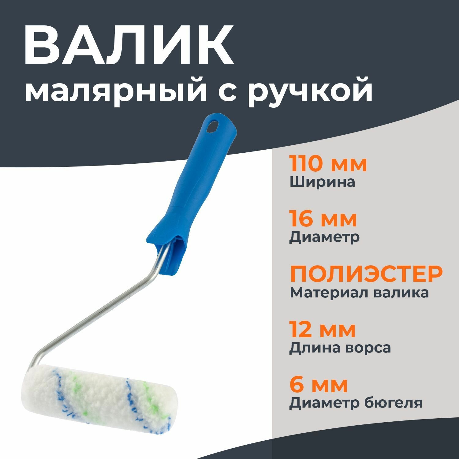 СохранитьВалик 110 мм D=16 мм с ручкой 6 мм полиэстер Сибртех 80580 интересное: