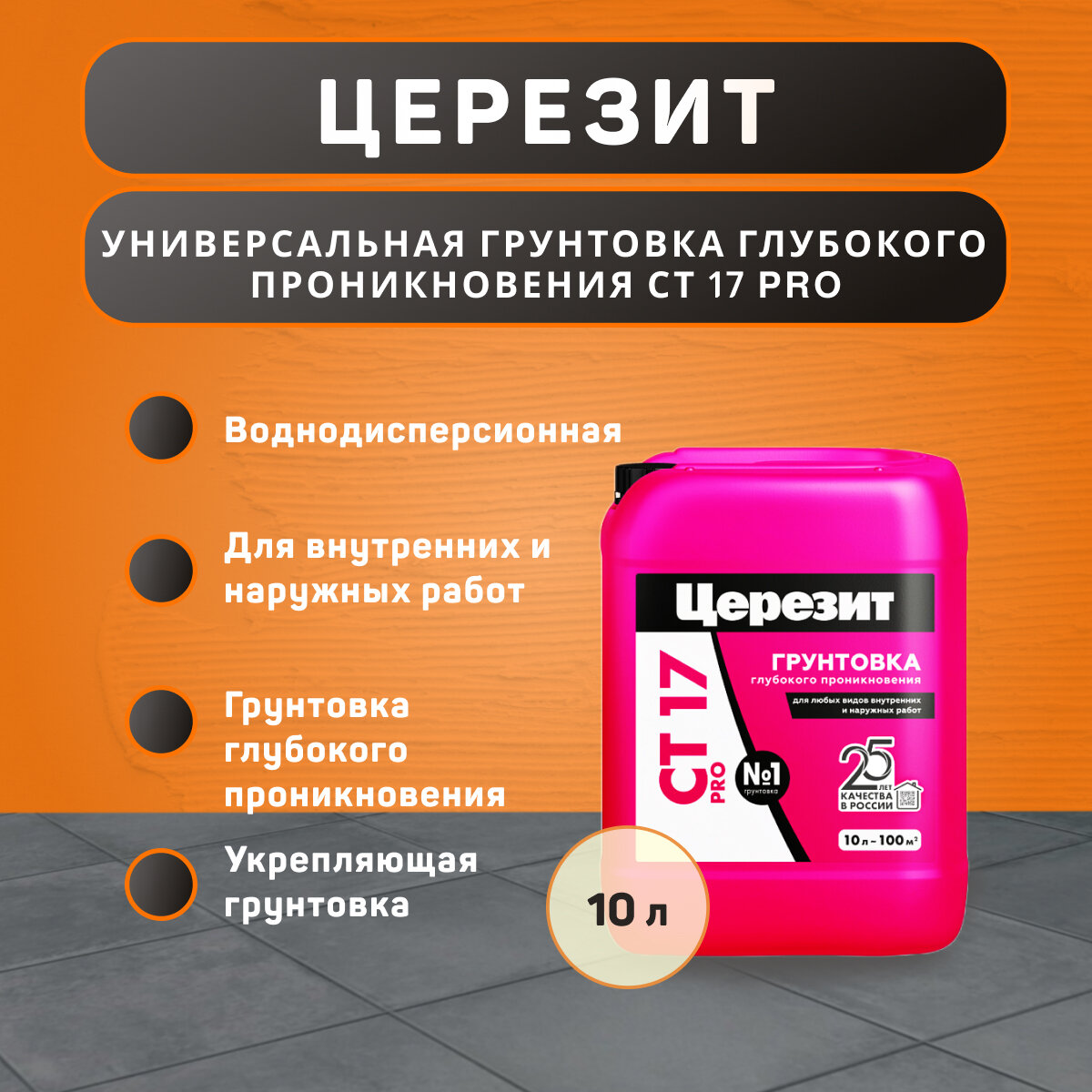 CERESIT CT 17 PRO грунтовка глубокого проникновения для наружных и внутренних работ (10л)