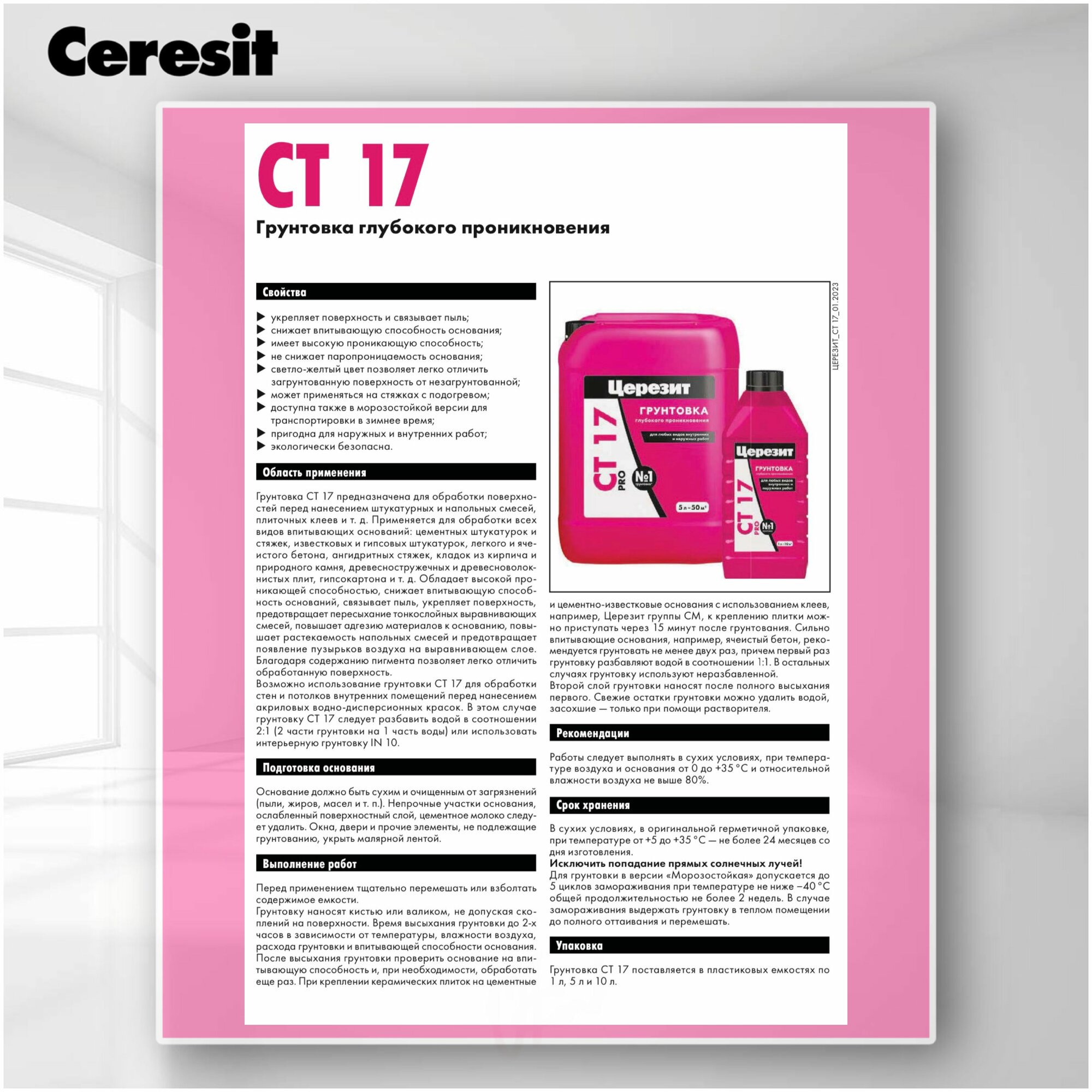 CERESIT CT 17 PRO грунтовка глубокого проникновения для наружных и внутренних работ (5л)