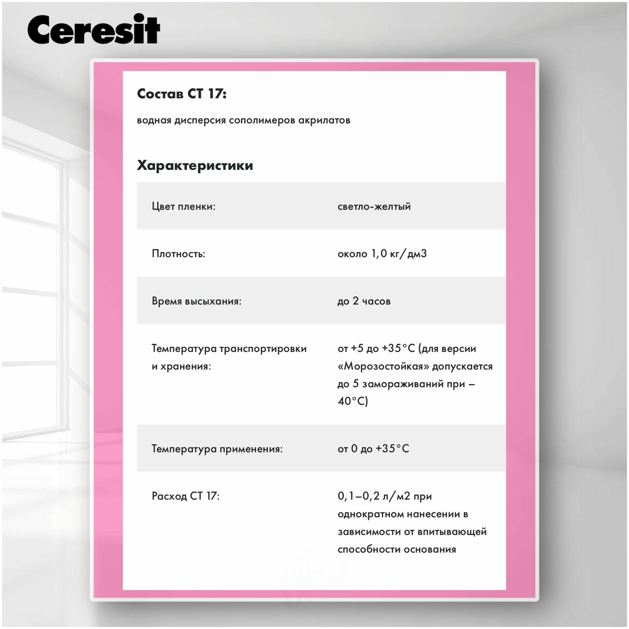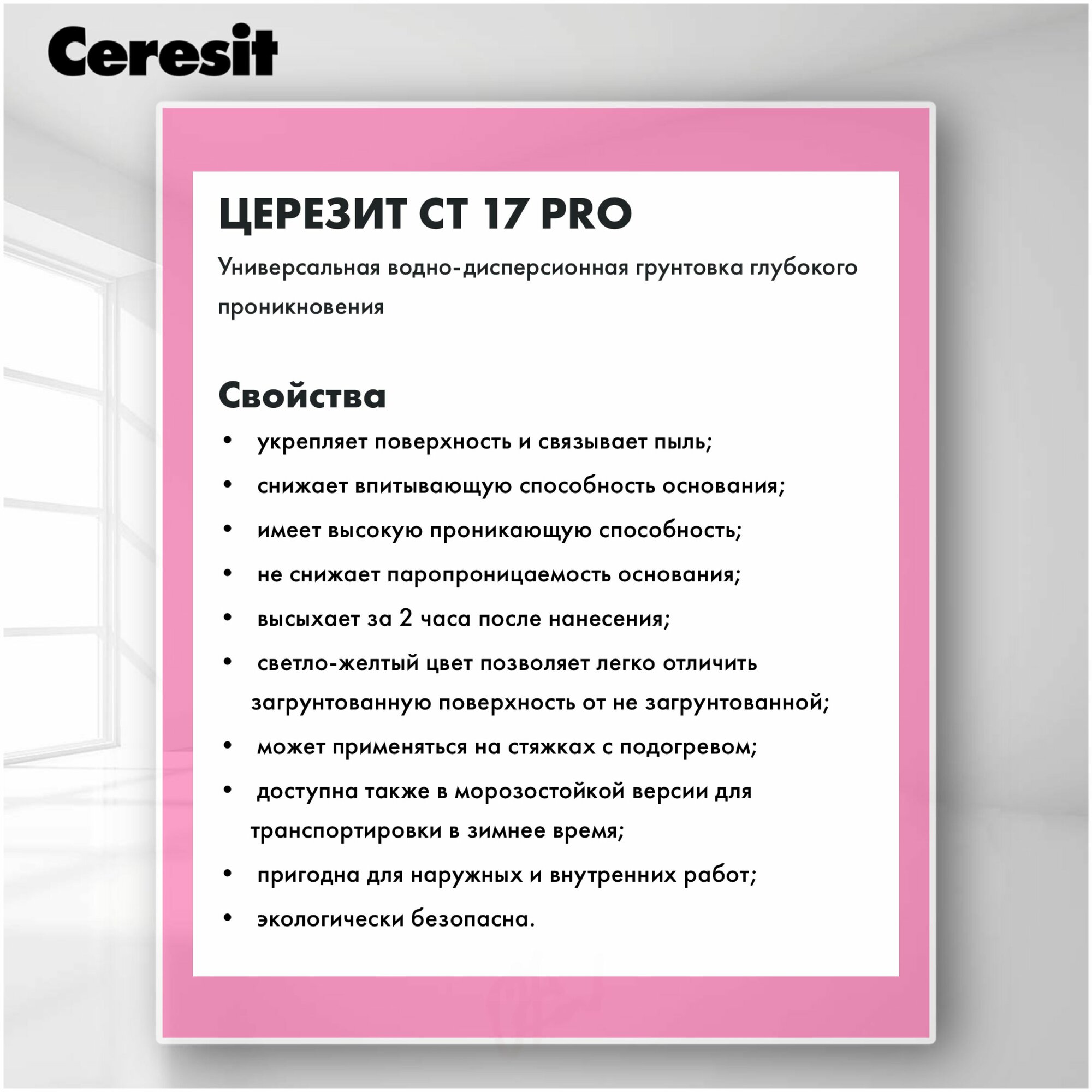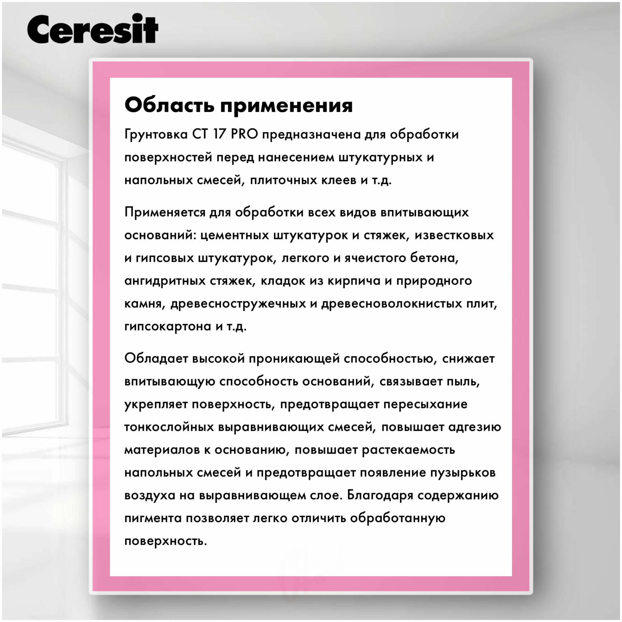 Грунтовка Ceresit CT17/10 PRO, укрепляющая, для внутренних и наружных работ