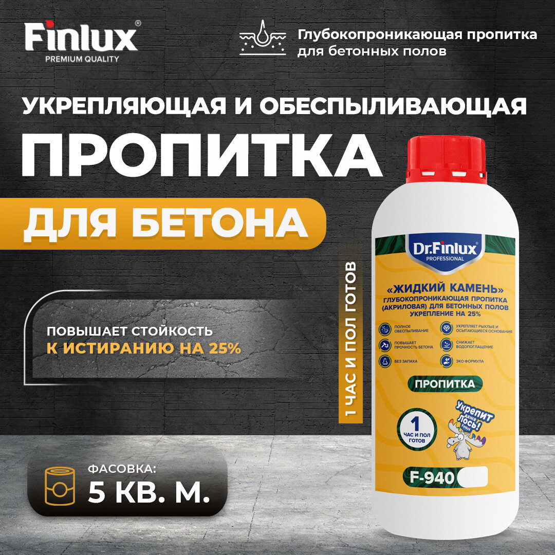 Укрепляющая и обеспыливающая водоотталкивающая пропитка для бетона, бетонного пола Dr. Finlux F-940 "Жидкий камень" 5 кв.м.