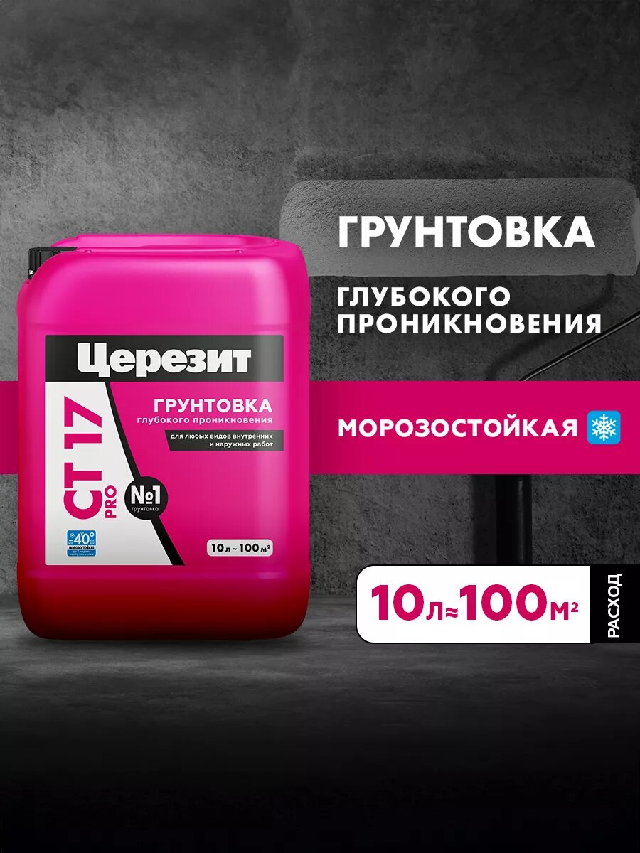 Ниже Вы можете прочитать отзывы на Грунт для внутренних и наружных работ глубокого проникновения Ceresit СТ 17 Pro морозостойкий 10 л., ознакомится с подробными характеристиками, посмотреть интересные обзоры и фотографии на Грунт для внутренних и наружных работ глубокого проникновения Ceresit СТ 17 Pro морозостойкий 10 л..